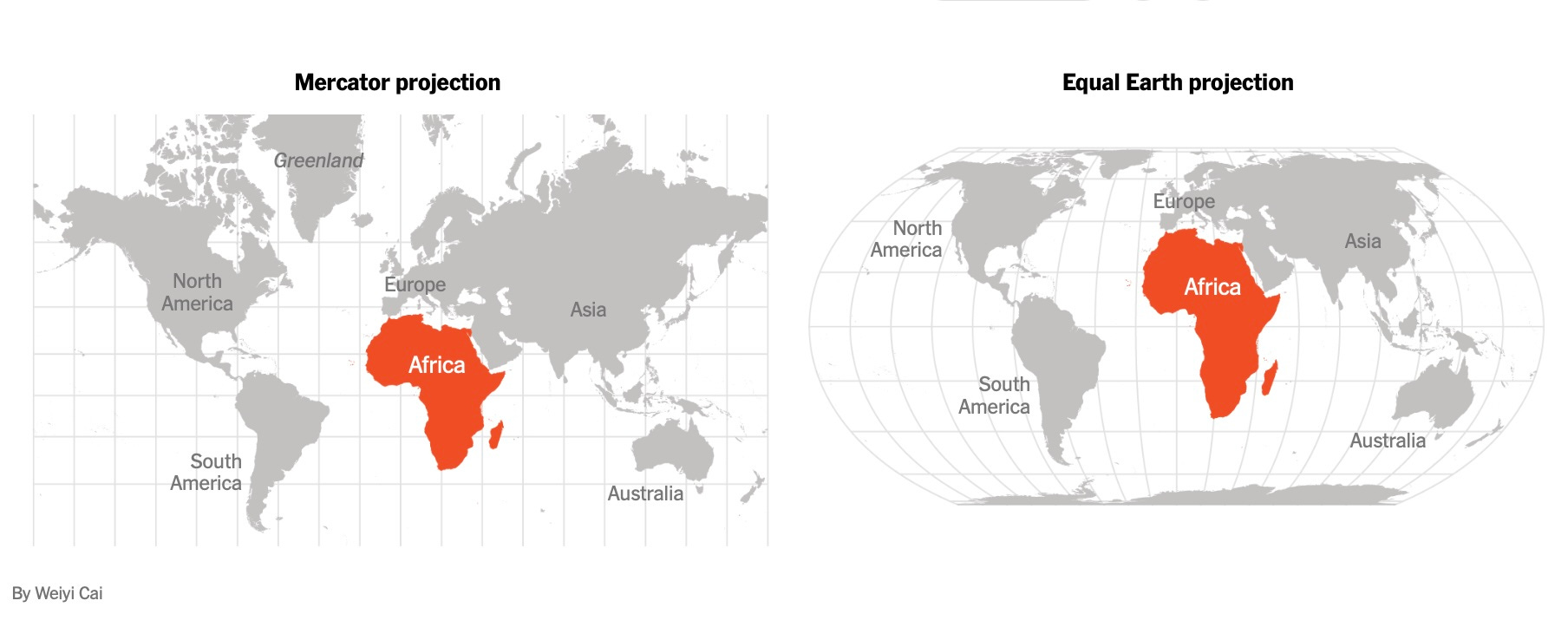 NYT: Africa Is Big, and It Wants the World’s Maps to Show It; A campaign is underway to replace the world’s most popular map, which the effort’s supporters say promotes a false view of the continent and its size.